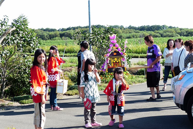 近所の神社の秋祭りで子供御輿がやってきた。