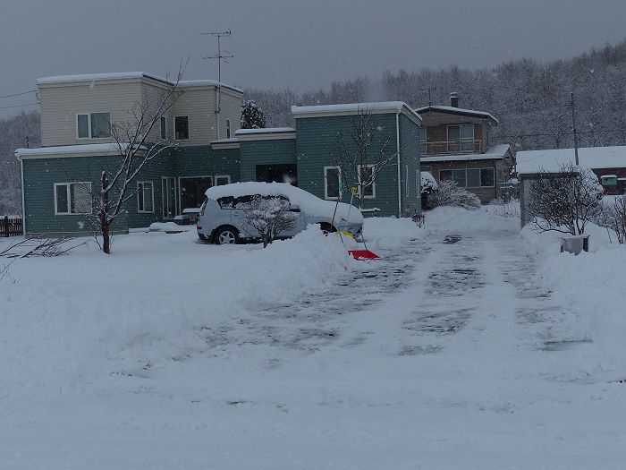 今日は朝から吹雪。小止みになったので雪かきをする。