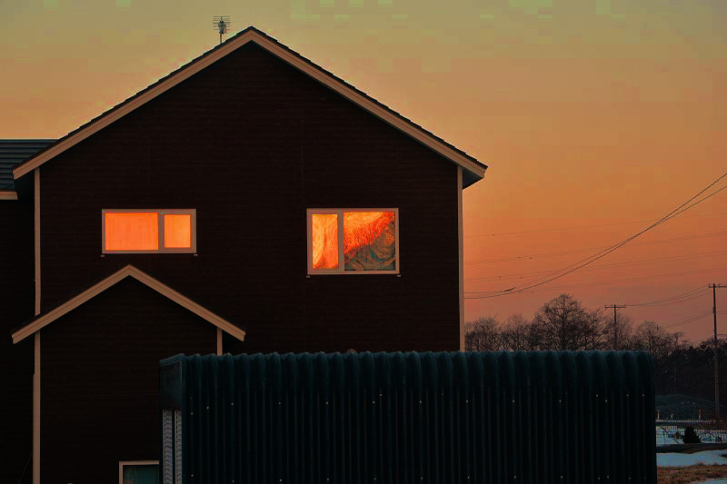 今朝は少し早く目覚めて、何気なく外を見ると隣の家が日が登り始めた朝焼けの中に浮かび上がっている。