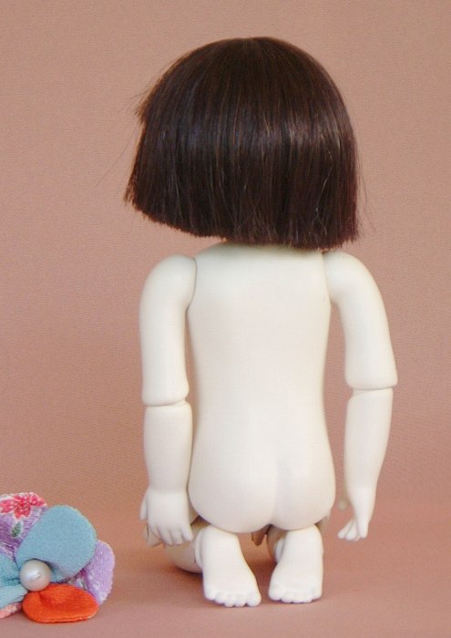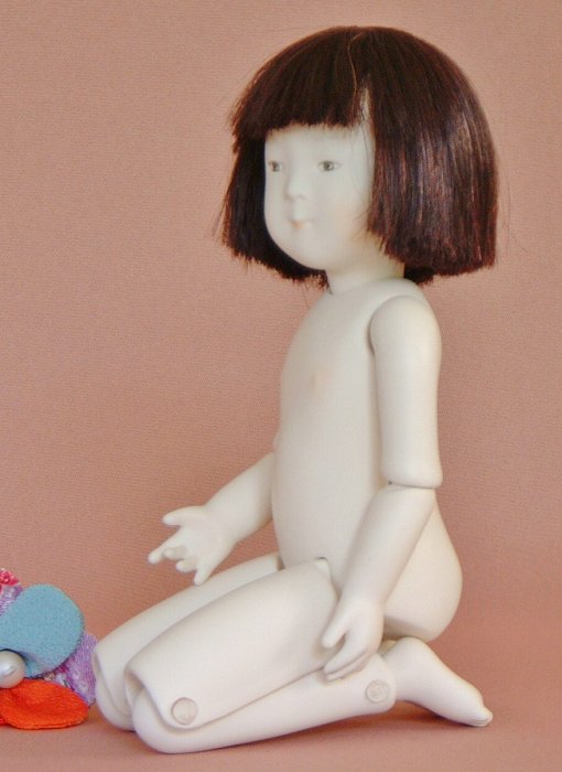 6号 首、股関節、膝、足首が動き正座ができる。目は描いたもの 美人とは言えませんが、愛らしく創ったつもりです。