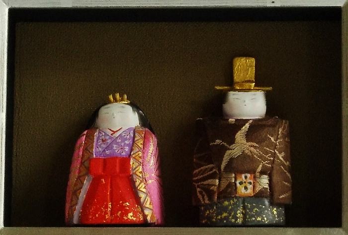 木彫(桐) 古布(江戸ちりめん)木目込み (9x7x13)x2布選びが 難しく お雛と女雛の調和 色、材質に悩みました。