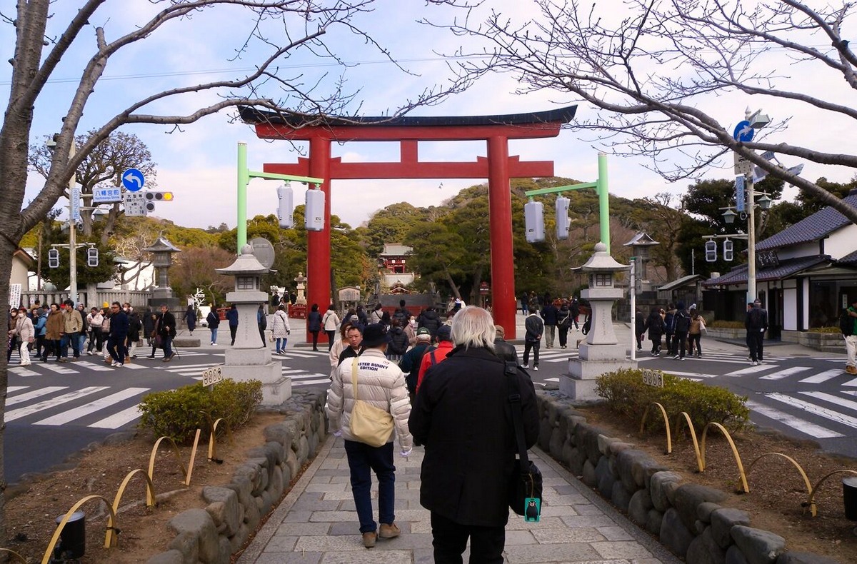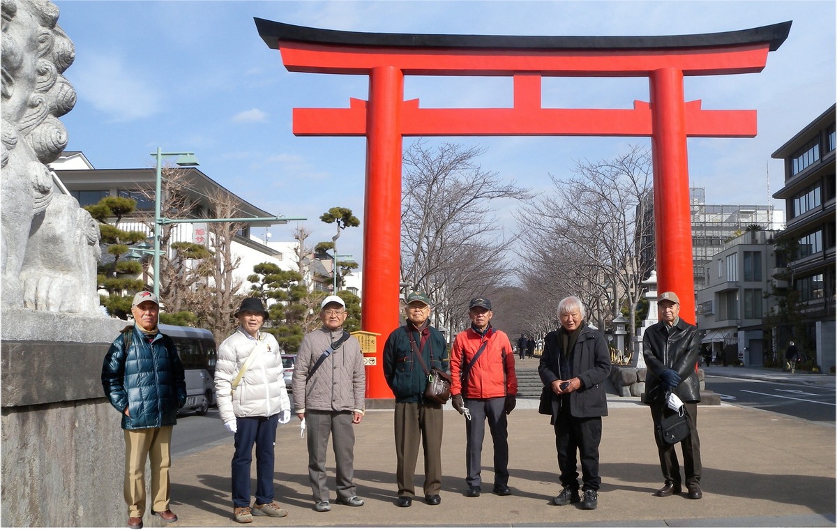 鎌倉八幡宮の三ノ鳥居を後にして人混みの中を右手方向に向かう先導役の石塚幹事の背中をを追うに、彼の姿が突然消えてしまう。
