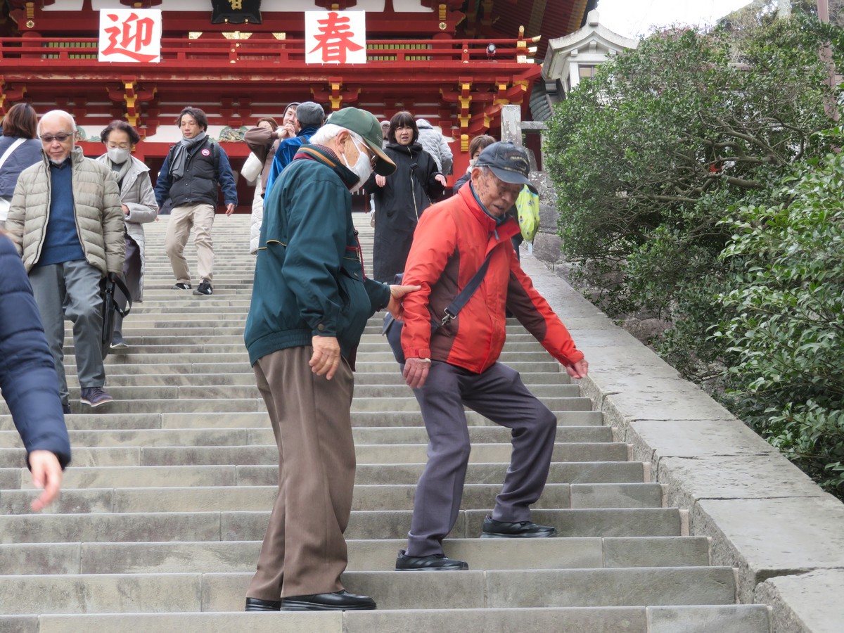 振り返るに、2018年9月の第37回山八「鎌倉 円応寺から八幡宮まで」で同じ階段を上り下りしたのだが、その折は何の感興もない通常動作の一場面でしかなかったものが今や大事(おおごと)の場面になるとは、、、、、、、