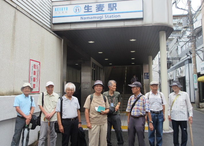 台風5号が関東沿岸をかすめて北上し北海道へ上陸した朝、関東は台風一過の晴天とは行かず梅雨前線の停滞で雨模様となったが、幹事殿の雨天決行のゲキで予定通り、大川、内藤、柏木、石怐A杉岡、小野山、広瀬、浪本の8名が6月15日京浜急行生麦駅改札出口に集合した。
