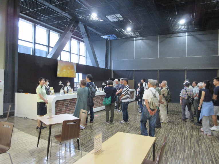 見学のクライマックス出来立てビール試飲コーナーへ到着。