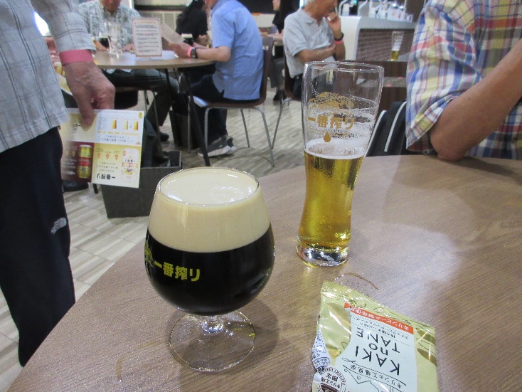 試飲は「出来立て一番搾り」、「一番搾りプレミアム」、「黒ビール」の中から選べて、グラス2杯までお代わりもできる。