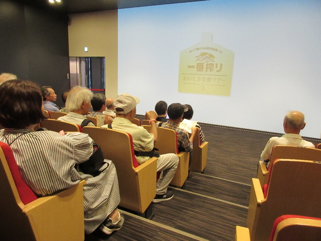 30人程がわれらグループにまとめられてまずプレゼンテーション室の映像紹介から見学開始。会社の歴史や主力の一番搾り完成の経緯など紹介があった。