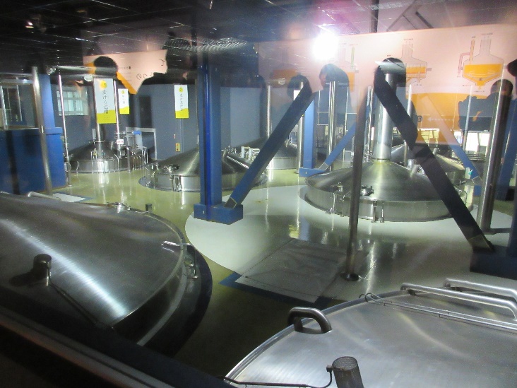 大麦とホップと水を仕込み処理する巨大タンクが並んでいた。