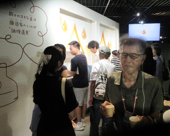 看板の一番搾り麦汁と二番搾り麦汁との味比べコーナーがあり、現物を試飲した。まだ発酵前でアルコールはなく、当然ながら一番搾り麦汁は大麦の強い香りと甘味があり、二番は水っぽかった。
