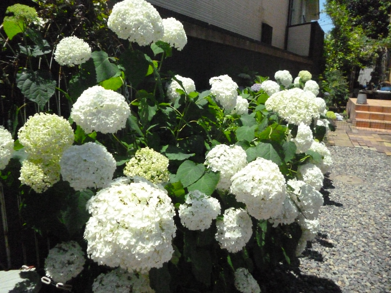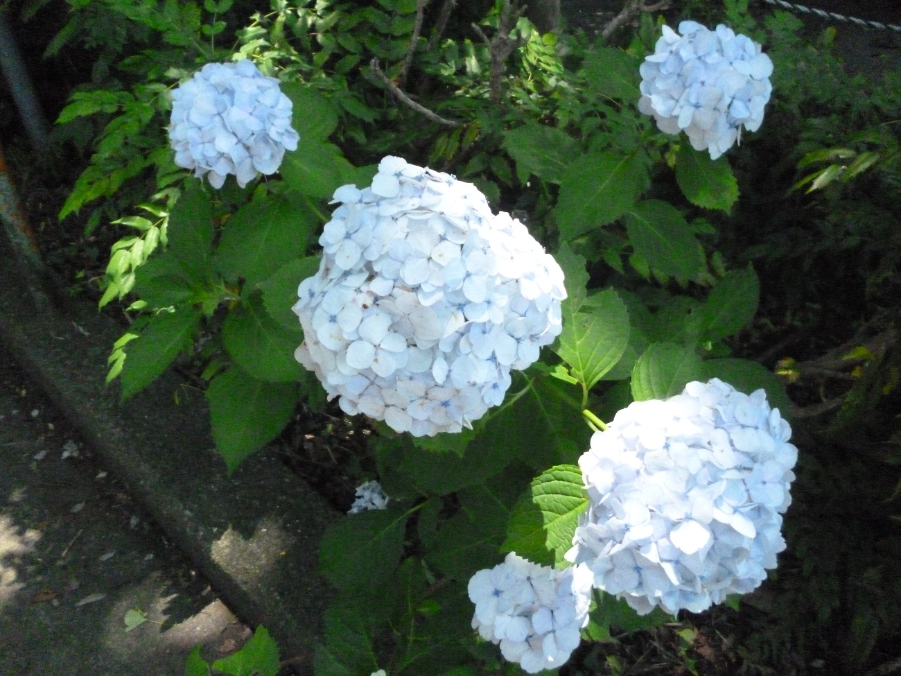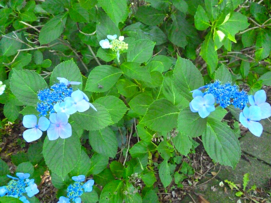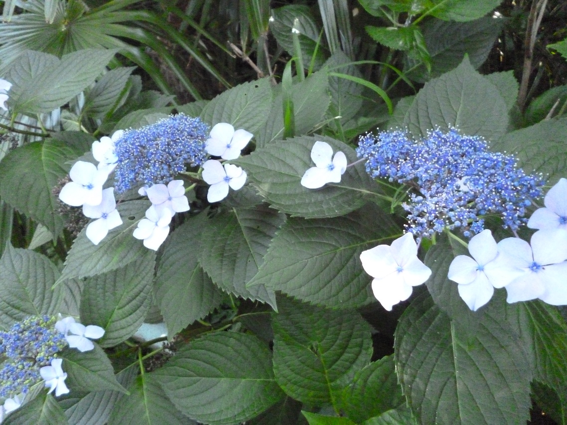 途中で出会ったアジサイ群・・アジサイの花言葉も多様で、「白」は寛容、「青」は無常、など我等の心境にも通ずるものありや、、、