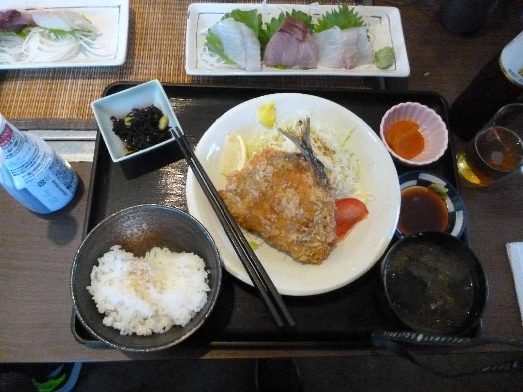 「真名瀬」バス停から乗車、JR逗子駅へ戻り駅前の「さかな食堂」でランチ