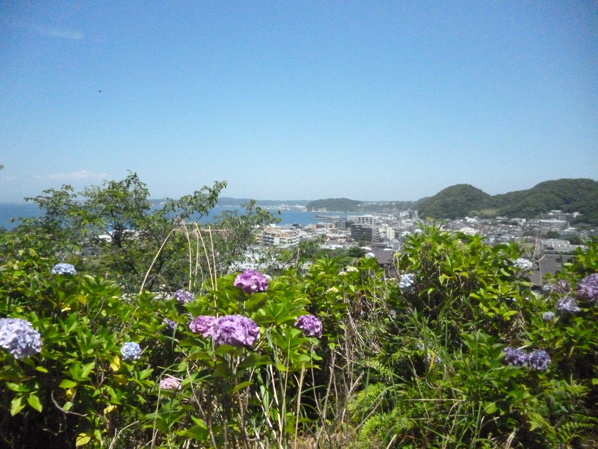 あじさい公園到着、苦労した甲斐がある高台の素晴らしい眺め!!