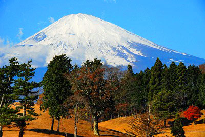 峠を越え、茶店の前で、雪をかぶった雄大な富士山に感嘆しつつ、阿川車を待つも来ず。