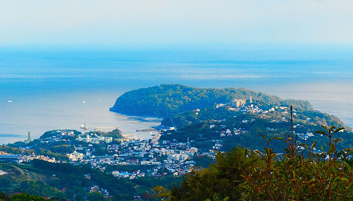 プレイ終了後は日が差し、相模湾と真鶴半島の絶景が姿を現した