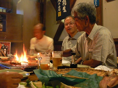 釧路の夜は炉端焼きで打ち上げ会