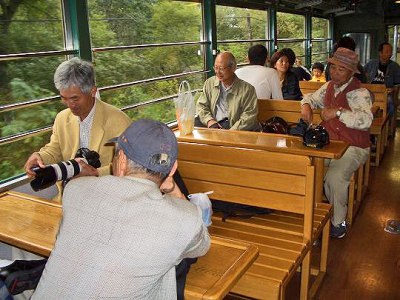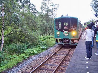 外観は普通のディーゼル電車と変わらないが車内は木製の椅子とテーブルが備えてあり、観光客相手の季節電車であるがなかなか気の効いたサービスである。