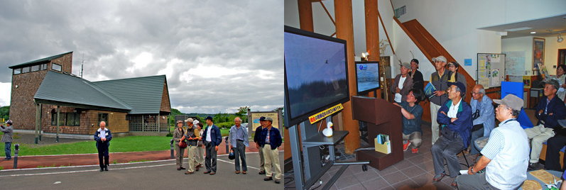 近くの厚岸湖やそれに連なる別寒辺牛(べかんべうし)川の要所に遠隔操作のカメラを設置、各カメラからの信号を光ファイバーで集めて、館内の大型モニターで自在に湿原の様子や野鳥の生態を観察できるというハイテクな施設である。