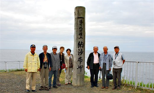 目的地ノサップ岬に到着。日本最東端の感慨にふけりながら、遠くに水晶島、貝殻島等の歯舞諸島を眺める。記念撮影も終わり日の暮れかかったところでバスで根室市街にあるホテルへ向かった。