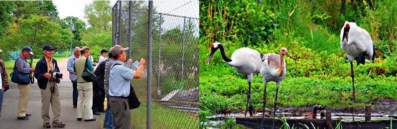 最初の探訪地である丹頂鶴自然公園に向かう。ここには夫婦鶴と今年春に生まれた雛がひとつのケージに入っており、おおよそ10組ほどが飼育されていた。