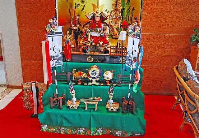 玄関に飾り付けられた五月人形が我々を迎えてくれた。