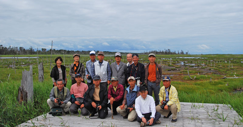 春国岱は、アカエゾマツの原始林が広がり、塩害で立ち枯れた木や先年の低気圧によって、倒れた木やその根等、大自然のままの景色を堪能できました。