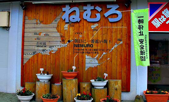 根室駅は、「朝日に一番近い街」の看板を掲げており、既にエンジンをかけたジーゼル列車が停まって、5時58分の始発を待っていました。(一日の列車の発車は8本)