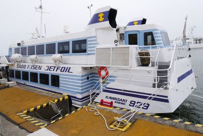ジェットフォイル「すいせい」            両津港が見えてきた