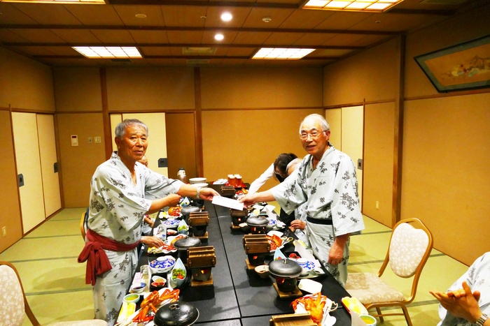 部屋割りを済ませ、天然温泉の大風呂に入り夕食は中川先輩と一緒に楽しい宴会となった。