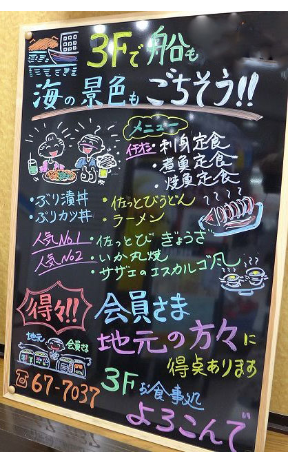 昼食は、中川先輩の案内で両津港埠頭ビルのレストラン「よろこんで」へ。