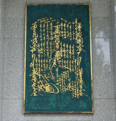 本堂の前には立派な石碑があり、日蓮が佐渡に流されていた間に図顕したとされる佐渡始顕本尊を復元したパネルがはめ込まれていた。本堂への入り口から思わず中へ入って手を合わせた。荒木田、浪本の両氏も続いたが、何を祈ったのだろうか。