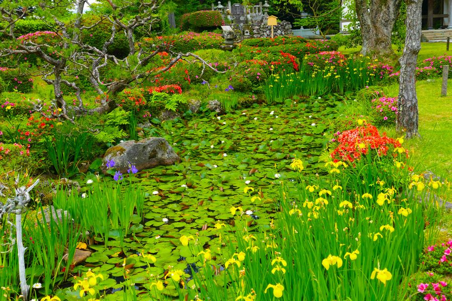 さまざまな花が咲き乱れる妙宣寺の庭