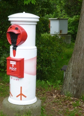 最後のトキ「キン」の石碑 トキポスト(飾りではなく郵便局の本物のポスト)