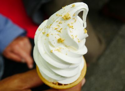 売店前で一休み 金箔入りソフトクリーム