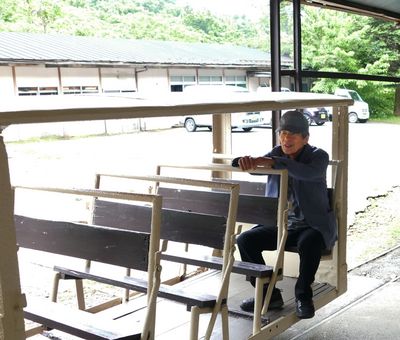 外へでると、腰を痛めて歩くのがしんどそうな荒木田さんがトロッコに乗って休んでいた。