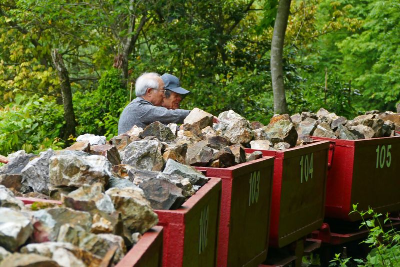 鉱石が積まれたトロッコを見る