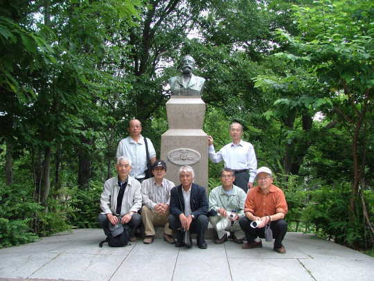 先ずは、クラーク先生の胸像を探し出し、「証拠写真に・・・」と全員にて、記念写真。