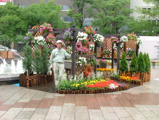 下世話な食い気に惹かれる二条市場組とて、美しきを愛でることにおいては人後に落ちず、ちょっと!と、大通りの花フェスタ。大通り公園(上り下りそれぞれ一通の二本の通りに挟まれた部分が公園になっていて)の真ん中の公園部分、噴水の周りを含めてあちらこちらに所狭しと鮮やかな花が飾られ・・・、これはとにかく綺麗!(それぞれに写真を取り合おうと、深作、柏木、こ汚いオッサン二人がそれぞれ花の傍に立つと、花に申し訳ない・・・との思いがしてしまうほどに)