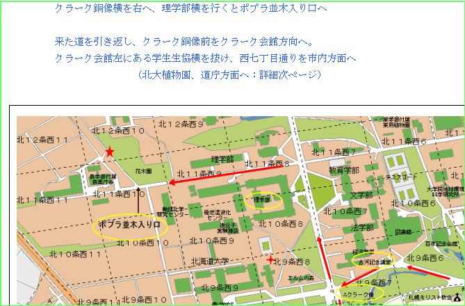 北大、札幌の北口改札を出て一本裏の道路に入ると、見通す道路の片側、連なる建物や店があるところからぷっつりと切れて緑が道にあふれんばかりに・・・、あれが北大キャンパスか。