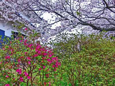 桜のトンネルをくぐり、途中にある孔雀園で鳥たちを冷やかしながら、お城を目指して丘を登って行く。この公園の素晴らしいところは桜と競うように山吹、つつじ、椿、水仙、雪柳などなどいろいろな花たちが同時に咲いているところだと思う。