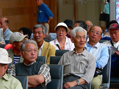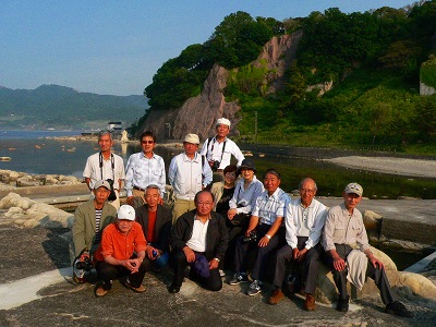 外にでるとあらかじめ予約されていた定期観光バス<のと恋路号>は既に待機中です。乗車手続きをすませ、観光ガイド資料を受け取り、乗車しました。バスは定期観光バスというとおりチャーター便とは違い、他の観光客と一緒の乗り合いバスです。しかも座席指定ではありません。三八会の14人は車内の一角をまとまって占拠することをせず、自分の好きな座席を自由に選んでばらばらに座りました。三八会のメンバーグループの和を重んじながらも、個人個人の自立意識もしっかり持っているのだと感心していました。