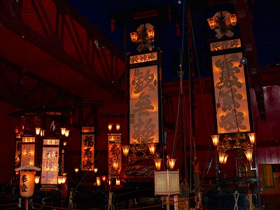 この会館には漆や金箔できれいに彩られた大小20数本のキリコが展示されています。