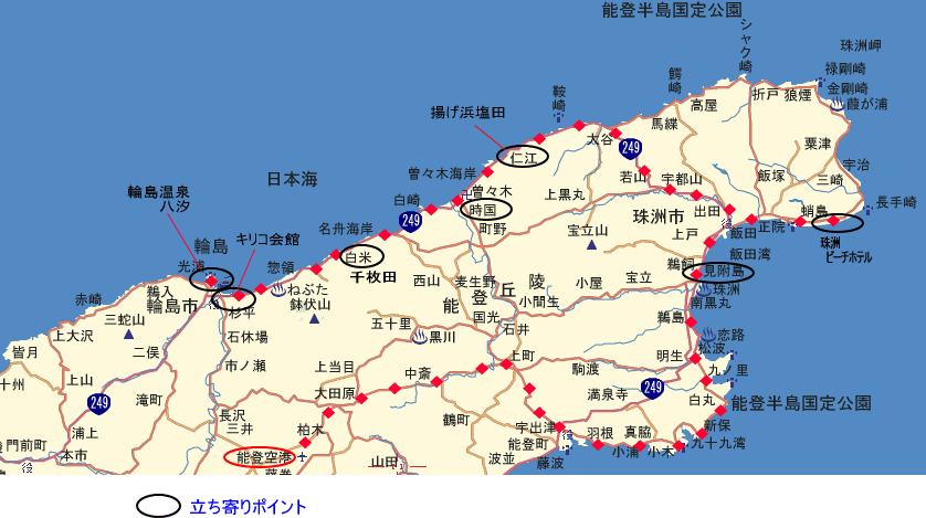 現地幹事の川崎さんが練りに練り上げたルートで、初日から能登半島をほぼ一周するものです。
