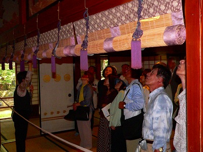壇ノ浦の合戦後、能登に流され、生き延びた平時忠の子・時国が住みつき豪農となって以来、25代続いているそうです。現存の家屋は1808年(文化5)から28年かけて築かれた茅葺きの入母屋造で、金の格天井がある御前の間、平家の定紋である揚羽蝶が入った襖などが印象的でした。