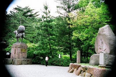 歩いて5分隣の尾山神社へ・・(裏門から入る・・ 何だか嬉しい!) NHKの大河ドラマの主人公、藩祖の前田利家が祭ってある。
