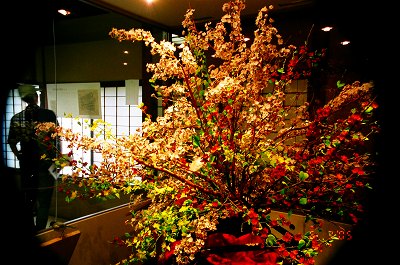 2階は、老舗に伝わる生活道具の展示、一番目を引いたのは、結納時の「婚礼模様」と称する、金沢の華やかな風習を表す数々の品物、花嫁のれん、水引や祝い菓子、それと全国菓子博覧会に出品した「花みこし」(一万三千枚ある花弁が全部お菓子)が展示されていた。