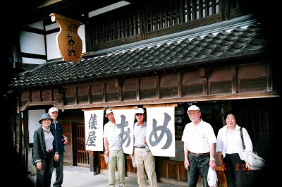 「番傘」を見つけ、全員で記念撮影・・しばし レトロ・ム-ド。