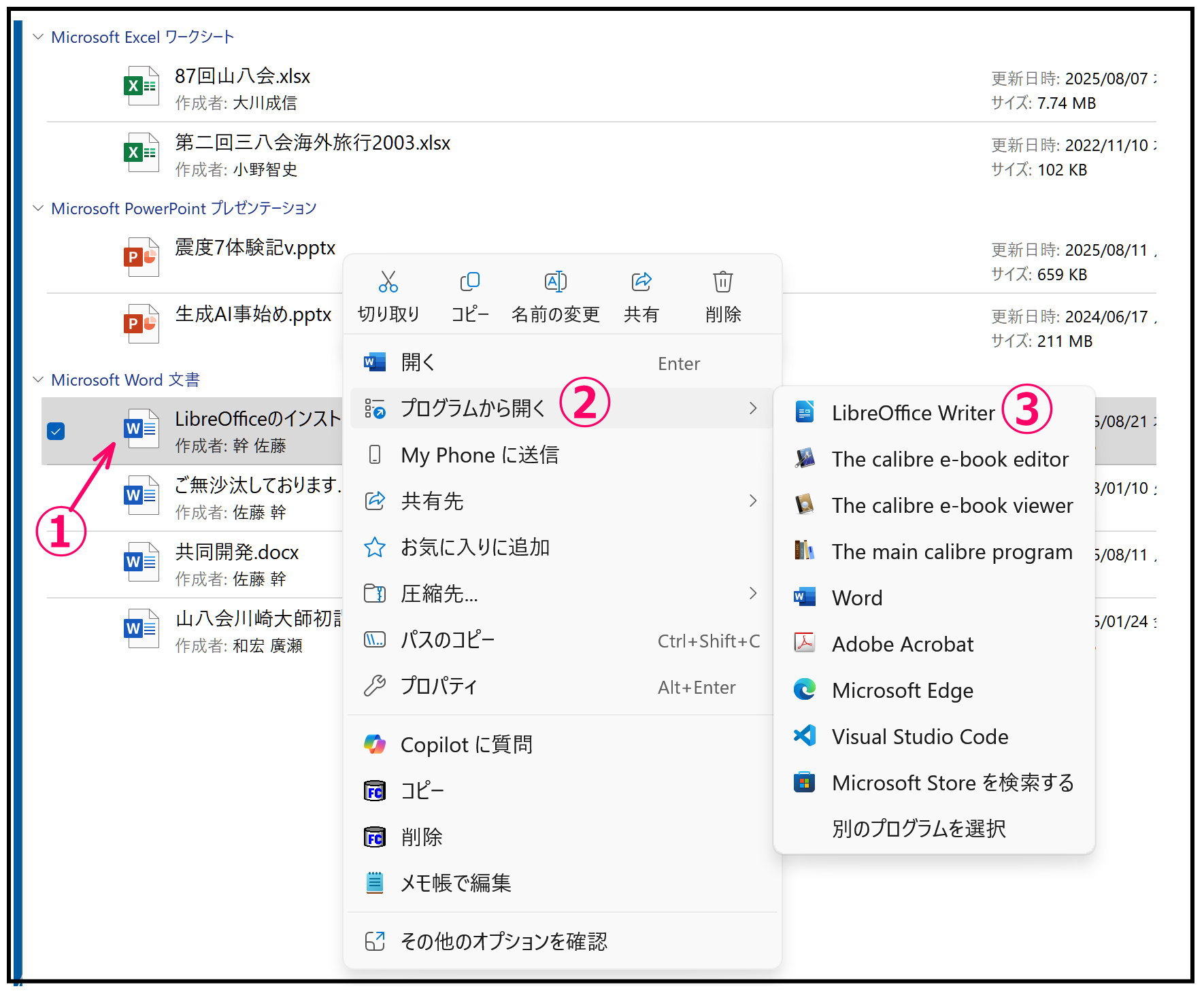 以上のケースはPCにMicrosoft OfficeとLibreOfficeが両方ともインストールされているときに生ずるケースである。