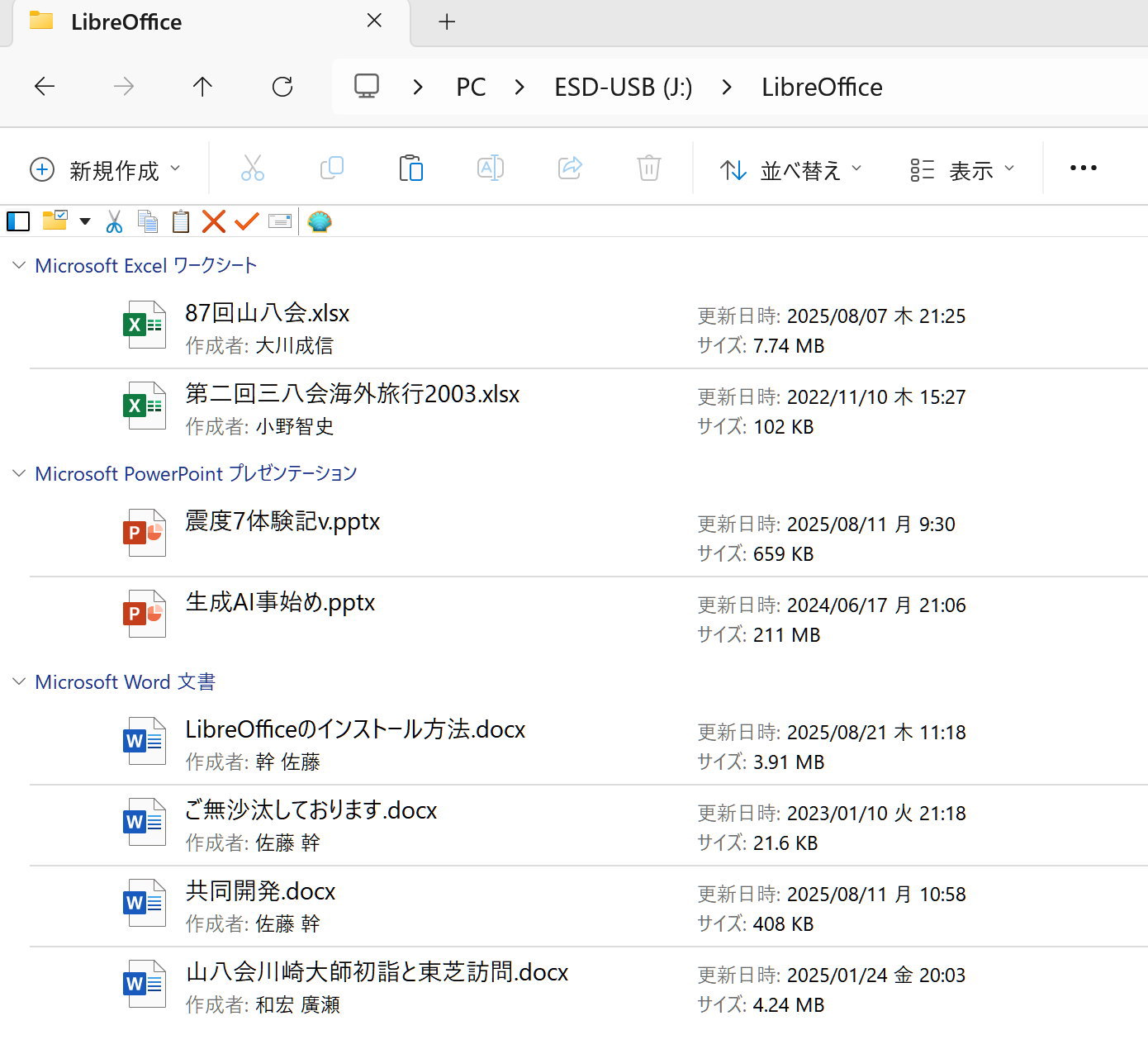 LibreOfficeをインストールした後、Office文書が入っているフォルダを開く。