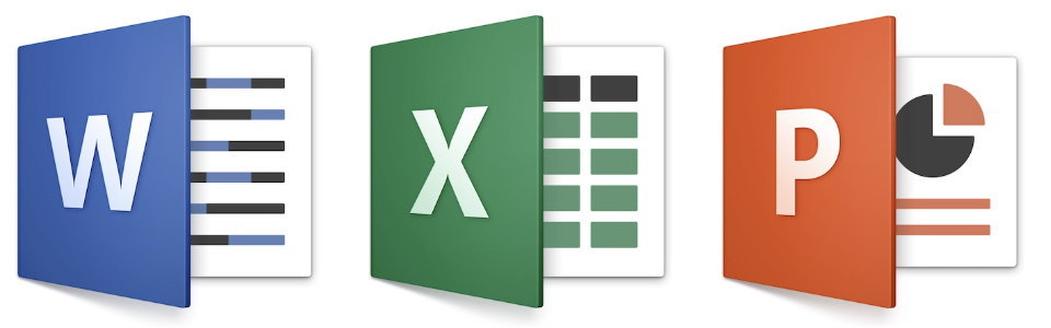 Microsoft Officeのアイコンの許に、Word、Exel、PowerPointのファイルがそれぞれ表示されている。