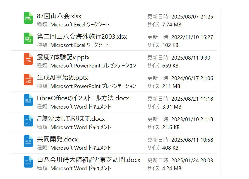 アイコンがすべてLibreOfficeのものに変わり、ファイル名をクリックするだけで、